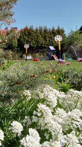 Goście mogą korzystać z ogrodu jako miejsca do porannej kawy, popołudniowego odpoczynku lub spokojnego spędzania czasu z rodziną. Zielone otoczenie, naturalna roślinność oraz widok na ogród z wybranych apartamentów sprawiają, że noclegi w Dębkach blisko morza w Villa NOVA zyskują wyjątkowy, kameralny charakter.